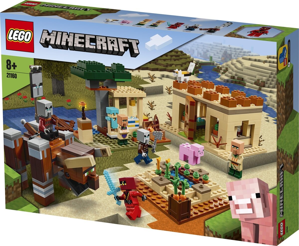 Насыщенное действием LEGO Minecraft приключение происходит во вдохновляющей обстановке с забавными аксессуарами и любимыми персонажами из популярной компьютерной игры. Когда на помощь приходит загадочная фигура Кая из Майнкрафта, всякое может случиться! Множество возможностей для строительства, игры и творчества. Легко создавать бесконечные игровые сценарии с возможностью перемещать три части модели, представляющие локации Minecraft — Дом в пустыне с плоской крышей. торговый пост и сельскохозяйственные угодья. Сняв крышу дома, вы также сможете играть внутри здания. Помимо дружелюбных поселенцев, разбойников (новинка января 2020 года), защитника, различных животных и аксессуаров, в набор также входит впечатляющий кусачий зверь-мародер. Он настолько большой, что на нем может кататься фигурка Minecraft, а его щелкающий рот открывается и закрывается. Перенесите Minecraft в реальный мир с помощью кубиков и фигурок LEGO. Наборы LEGO Minecraft дают детям инструменты для независимой групповой игры, а новые сборные фигурки (новинка января 2020 года) вовлекают их в захватывающую игру.