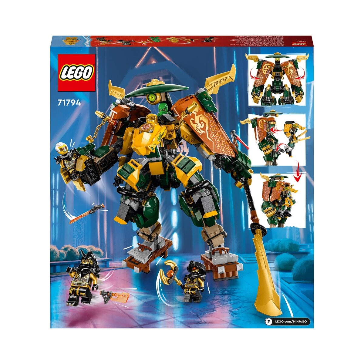 В набор входят два подвижных робота и пять минифигурок, благодаря которым дети смогут воссоздать сцены из сериала NINJAGO Dragons Rising.LEGO NINJAGO Команда роботов-ниндзя Ллойда и АринаДва робота делают одного больше