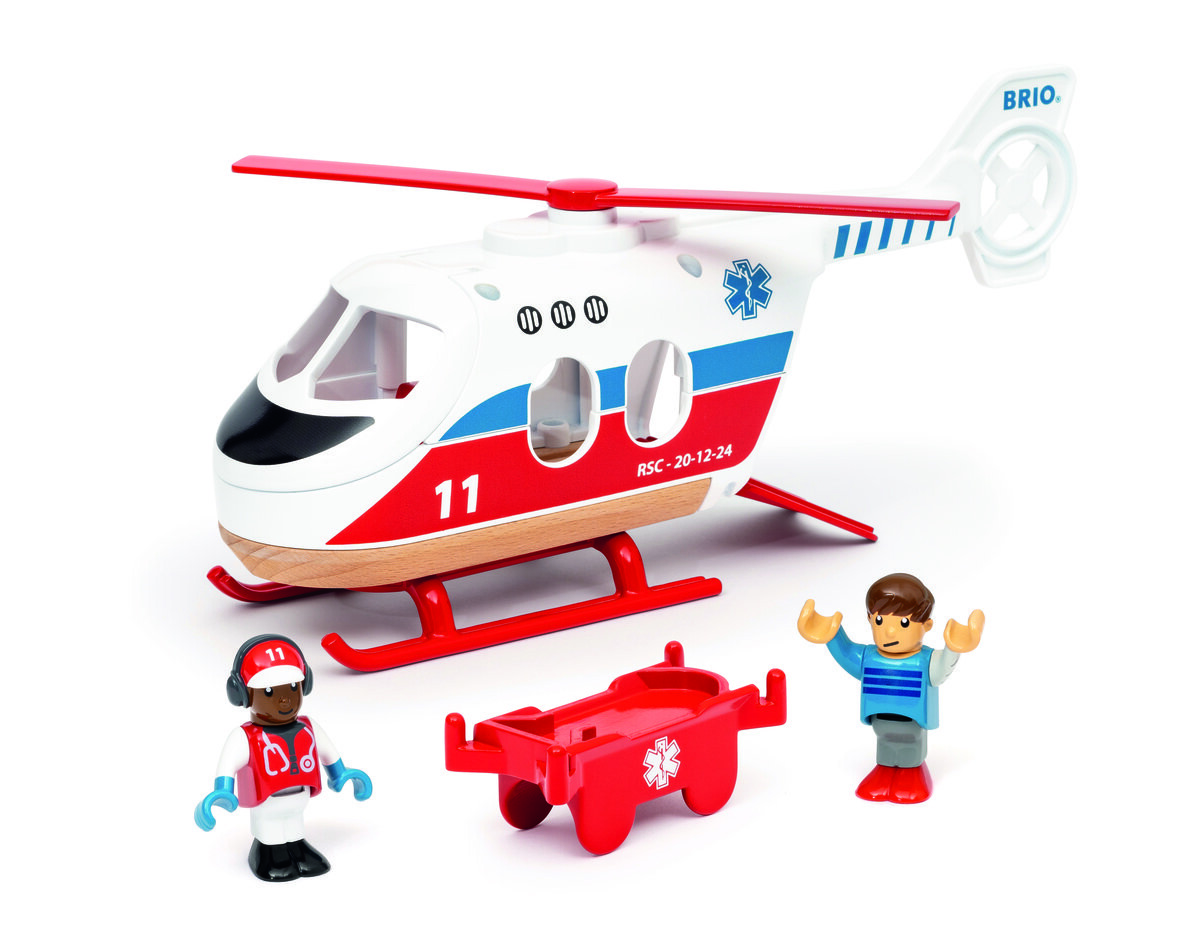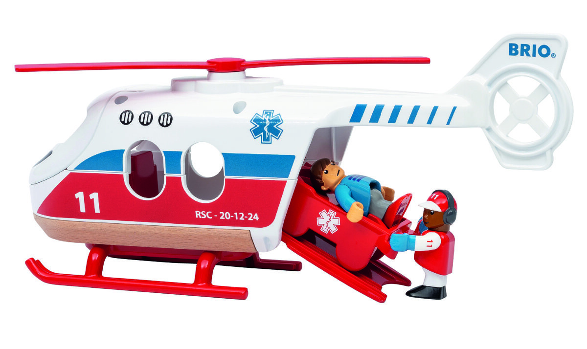 В наборе 4 предмета:1x спасательный вертолет, 1 фигурка пилота, 1 фигурка пациента, 1 носилки.