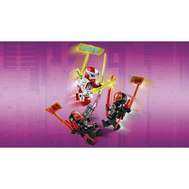 - В комплект входит летающая машина ниндзя и 4 минифигурки: Цифровой Кай из NINJAGO. Скотт и два Красных Визора. Дети будут рады спрятаться от реального мира и сражаться за Кей-Тану за рулем летающей машины.