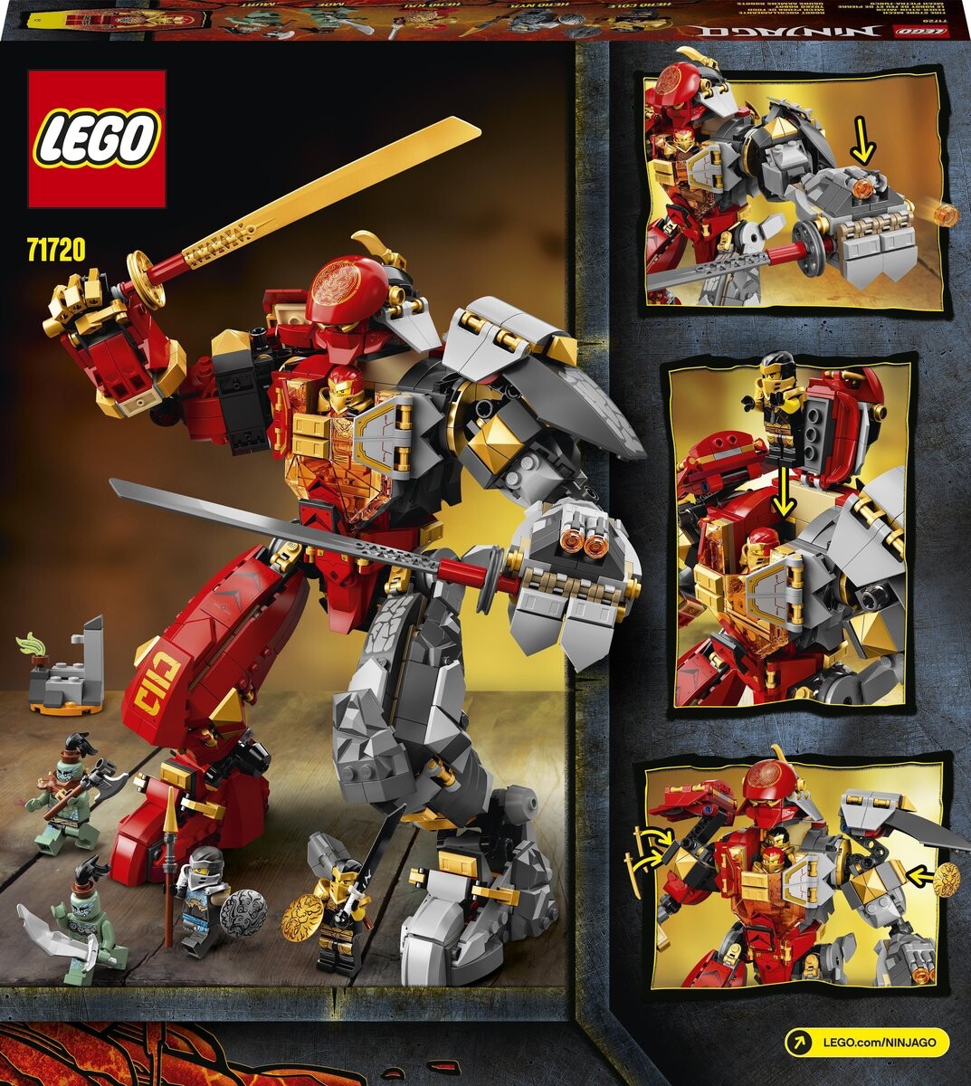 Механизм огня и камня LEGO Ninjago 71720Набор LEGO NINJAGO 71720 с мехом и пятью минифигурками доставит большое удовольствие всем детям, которые любят строить и увлекаются воинами ниндзя. Дети весело проведут время, собирая фигурки роботов и воинов, которые затем смогут использовать для воссоздания динамичных сцен из серии NINJAGO.