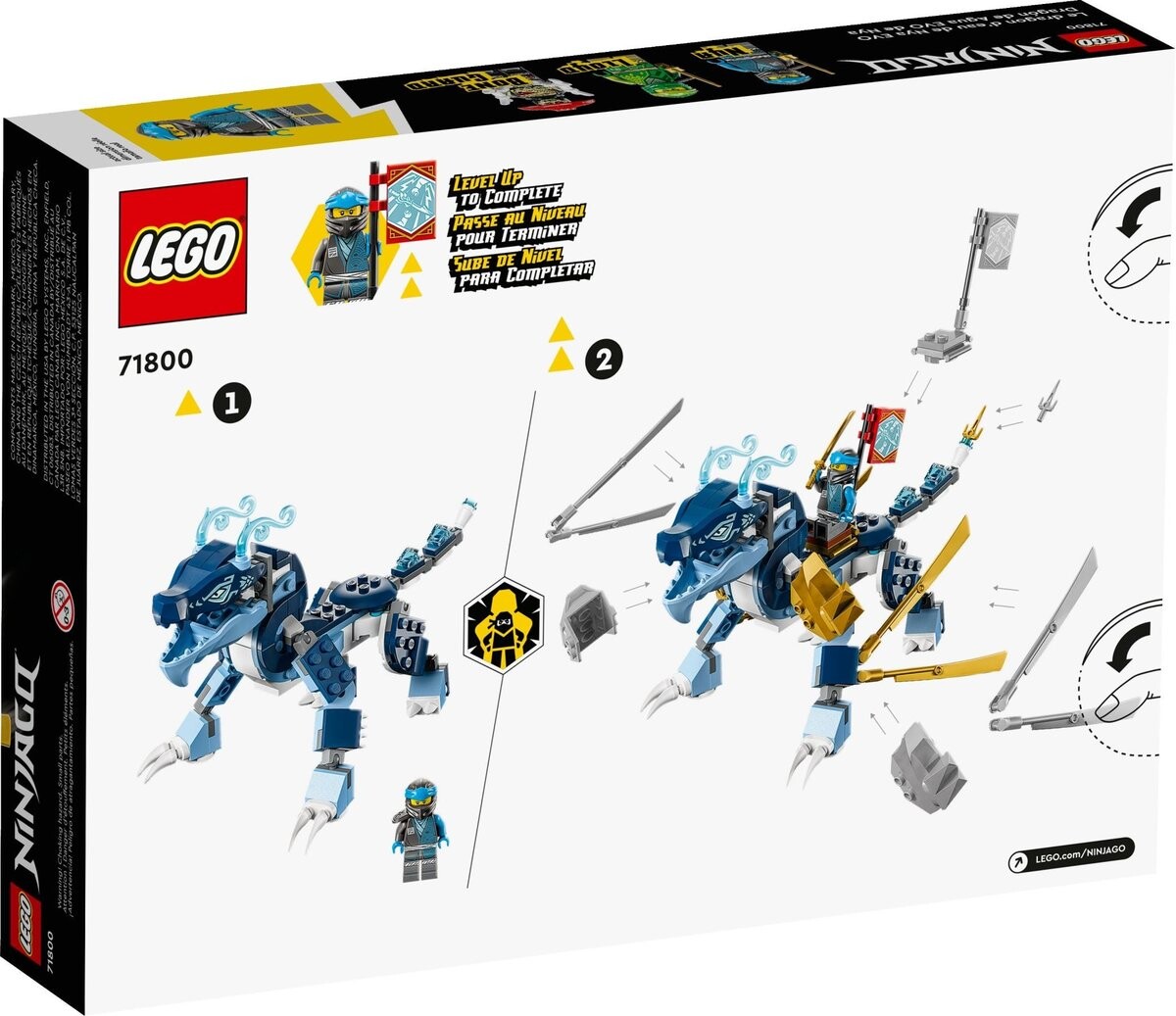 С набором Nyi EVO Water Dragon (71800) поклонники ниндзя в возрасте от шести лет и старше переживают захватывающие приключения в воздухе, на море или на суше. Впечатляющий дракон LEGO имеет подвижную голову, челюсть, ноги и крылья, а также хвост, который можно использовать в качестве оружия. У него также есть седло, в котором может сидеть Ния. Его можно улучшить с помощью золотых элементов, чтобы сделать его еще больше и сильнее.