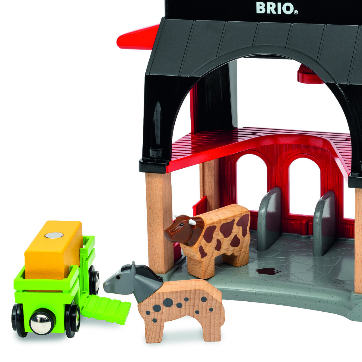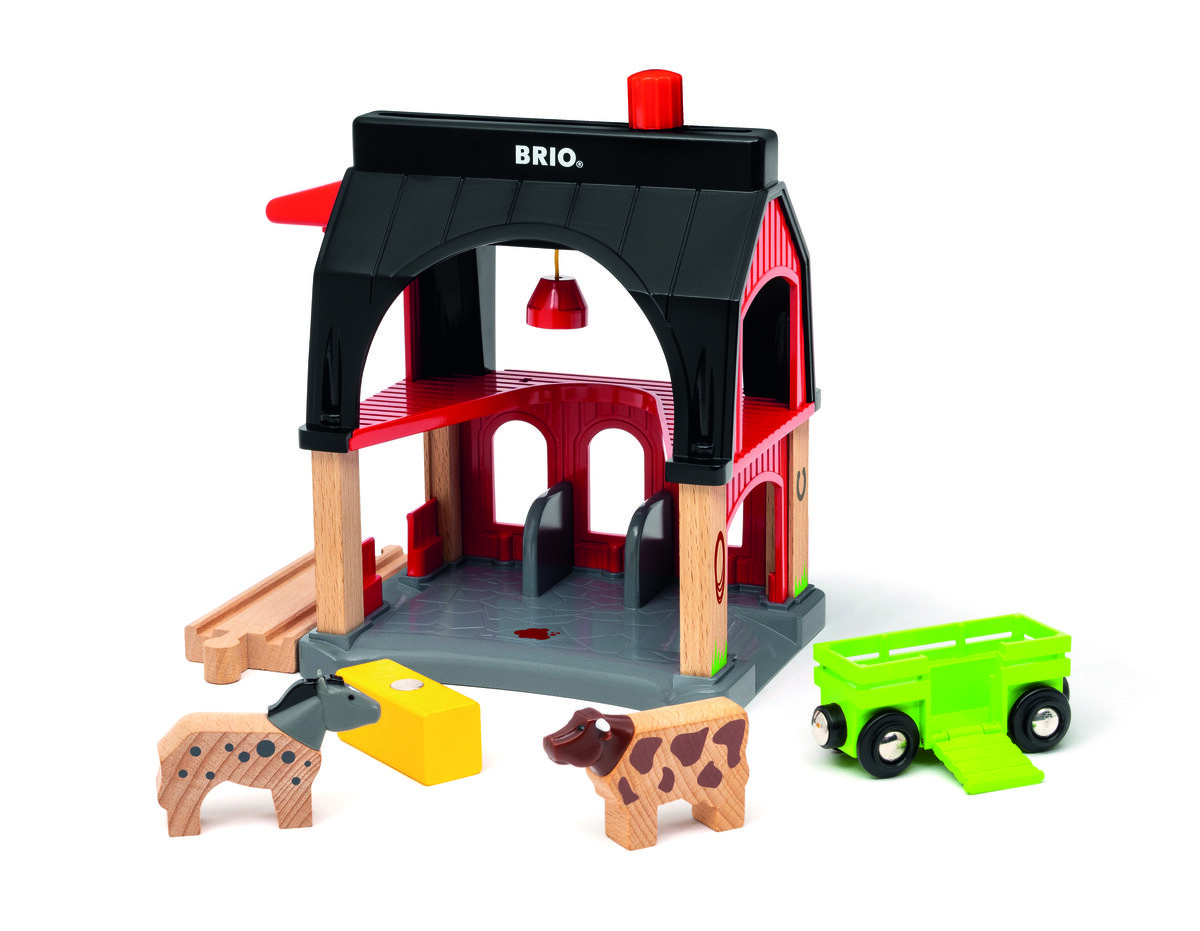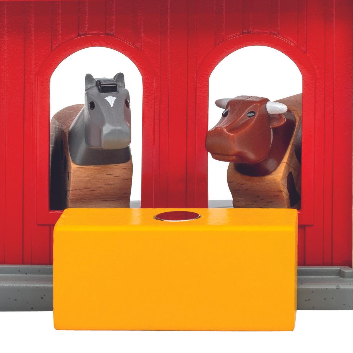 Представьте своим животным Brio хорошее место в новом сарае. Используйте функцию загрузки сена на первом этаже сарая. Добавьте здание к большому набору поездов, и вы также сможете использовать вагон для перевозки животных по миру Брио.