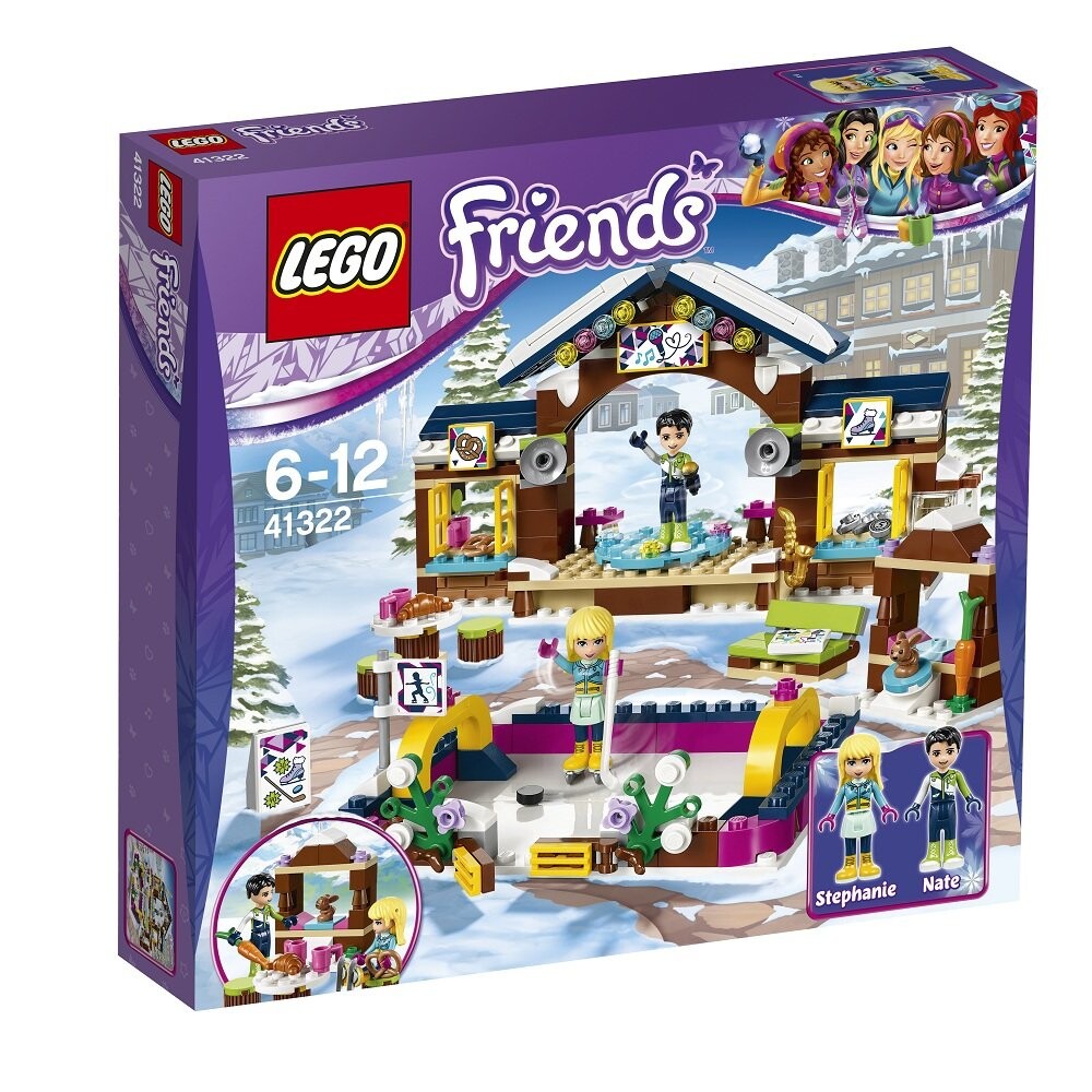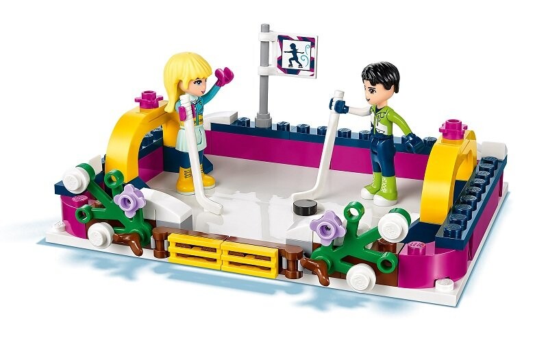 Покатайтесь на коньках на зимнем курорте LEGO Friends. Устройте шоу на вращающейся сцене катка, возьмите напрокат хоккейное и коньковое снаряжение или купите себе в магазине крендель. Есть даже дерево, рядом с которым живет милый кролик.