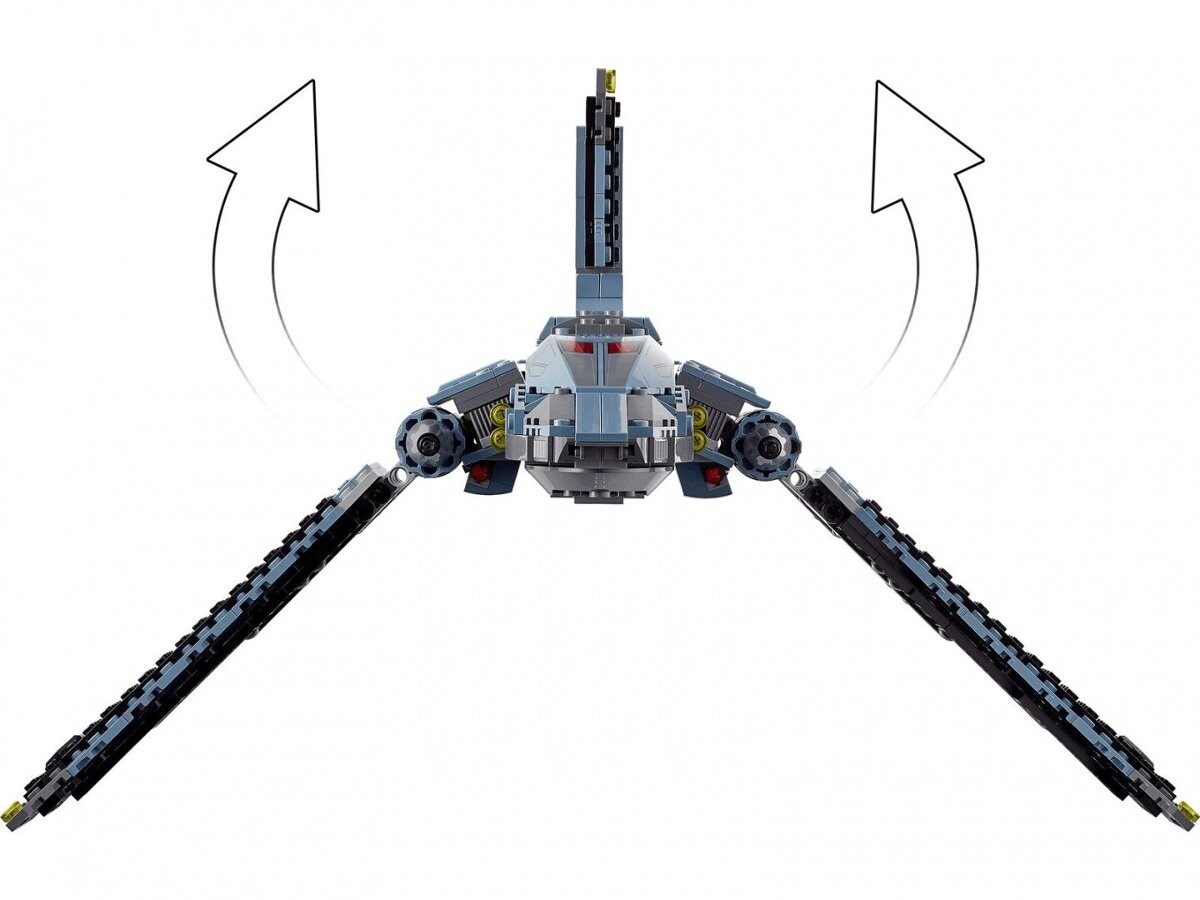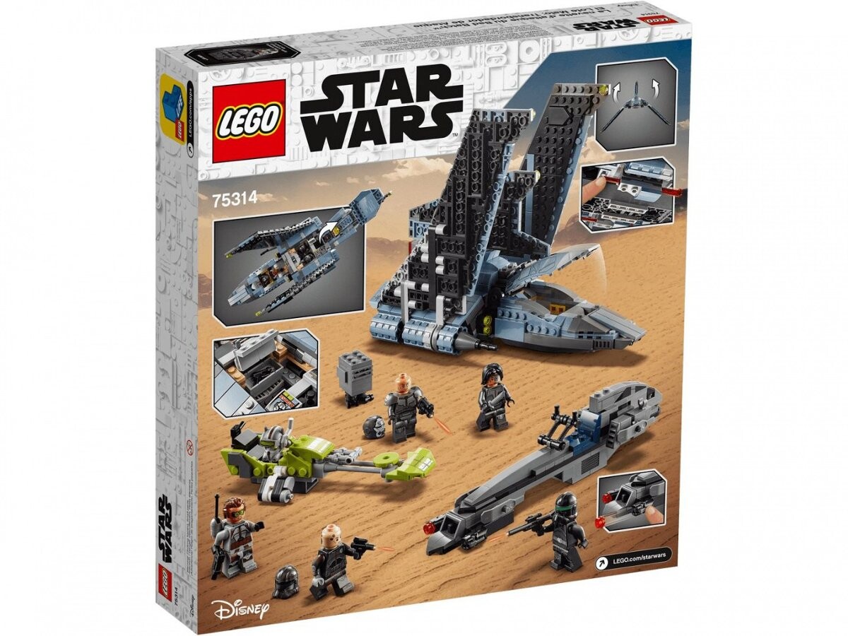 Присоединяйтесь к Грязной банде элитных клонов и отправляйтесь на захватывающие миссии на их штурмовом шаттле! Тех, Эхо, Охотник, Саботажник, Кроссхейр и дроид Гонк уже на борту. Загрузите свое оружие в кабину и отправляйтесь в космос. Опустите крылья, чтобы активировать режим полета и запустить подпружиненные ракеты. Приземлитесь в удобном месте и исследуйте местность на спидерах. Только будьте осторожны, потому что Кроссхейр может обернуться против вас! Сборный штурмовой шаттл-клон «Грязной банды» Дети могут играть роль клонов «Грязной банды» и выполнять захватывающие миссии с помощью сборного штурмового шаттла из кубиков из фильма «Звездные войны: Плохая партия». Детям понравится возможность играть за клонов из Отряда Девяносто Девять. предоставлена моделью штурмового шаттла Грязной банды LEGO (75314) из фильма «Звездные войны: Плохая партия».