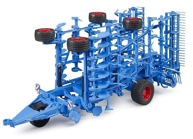 Суперсовременное культиваторное устройство воспроизведен в масштабе 1:16 с большим вниманием к деталям. С помощью рычага на шасси можно переключаться с вождения на полевые работы. Как большие боковые элементы с пластинами, так и зубчатые элементы можно сложить для движения. В разложенном виде эти элементы вместе с рабочими самовыравнивающимися роликами и зубьями открывают внушительные размеры всей машины, такой же, как оригинал.