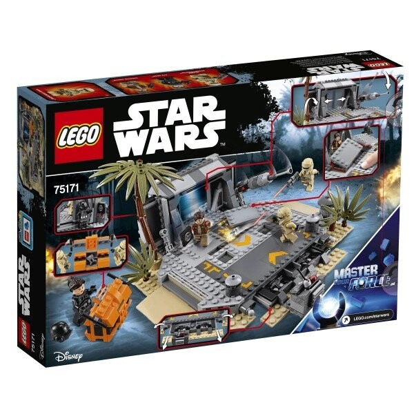 Украдите дизайн Звезды Смерти из пляжного бункера с взрывающимися плитами пола, раздвижными и закрывающимися дверями, комнатой для хранения оружия, открывающимся ящиком с апельсинами и 5 минифигурками.