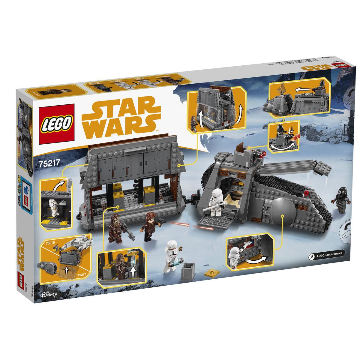 Запрыгивайте на борт мчащегося императорского конвейера LEGO Star Wars (75217) и помогите Хану и Чуи совершить дерзкое ограбление. Заберитесь в товарный вагон, избегая пуль из установленной сверху пушки. Отсоедините стены, чтобы добраться до бесценного коаксиума, но остерегайтесь магнитных стрелков-ботинок — они могут появиться совершенно неожиданно! Гусеничный локомотив LEGO Star Wars не останавливается ни перед кем! Спланируйте сверхбыстрое ограбление поезда с коаксиалом! Соберите ценный груз из поезда с помощью набора Imperial Conveyex LEGO Star Wars. Модель состоит из моторного модуля на гусеницах. съемный грузовой вагон с открывающимися бортами и коаксиумом, а также пять минифигурок. Воссоздайте смелые приключения контрабандистов из фильма «Хан Соло: Звёздные войны. Истории» с набором «Имперский конвейер» LEGO Star Wars (75217). Бронированный локомотив имеет двигательный модуль, окруженный гусеницами, открывающуюся кабину машиниста и место для хранения оружия. грузовой вагон с открывающимися бортами. Имеет подвижную башню с шиповыми стрелками и местом для четырех человек посередине. Включает коаксиальные контейнеры и лестницу, а также открывающийся люк на крыше для эвакуации. В этот удивительный набор входят пять минифигурок LEGO: Хан Соло, Чубакка, имперский стрелок и два артиллериста.