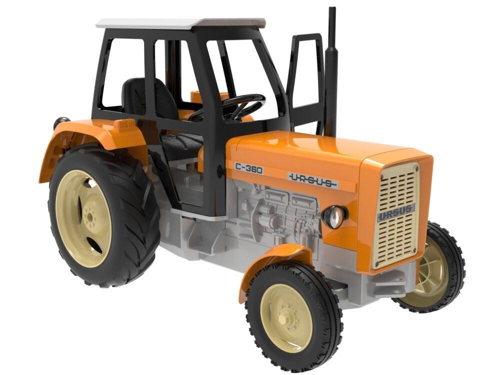 Лицензионный трактор URSUS C-360 (механический).Потрясающее качествоИгрушка изготовлена с исключительным вниманием к деталям и является своего рода копией настоящей машины. Имеет характерный силуэт и расцветку. Имеет съемную кабину и открывающиеся двери. Внутри реалистичное сиденье и большой руль. Колеса поворотные.