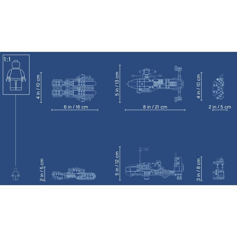 Две игрушки-конструктора LEGO Star Wars из фильма «Звездные войны: Скайуокер. Восход». «Возрождение» станет источником вдохновения для динамичного веселья. Творческим детям и коллекционерам понравятся удивительные детали, такие как гусеницы спидера, боковые стрелы и прозрачная основа, благодаря которой корабль выглядит так, будто он плывет в воздухе. В набор также входят фигурки LEGO с персонажами из вселенной «Звездных войн»: Рей, солдат Первого ордена с реактивным ранцем и водителем трекера Первого ордена, и дроид BB-8.