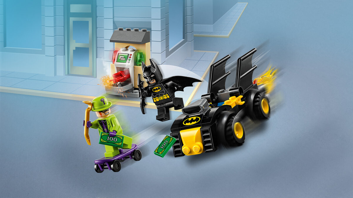 Помогите Бэтмену остановить Риддлера, пытающегося ограбить банк в ГОТЭМ-СИТИ, с помощью этого захватывающего набора LEGO DC Batman!