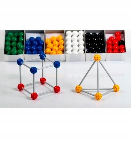 Множество отверстий в шариках позволяет соединять их палочками под разными углами. Благодаря этому можно создавать не только призмы и пирамиды, но и усеченные тела. Модели, созданные учащимися, будут использоваться для обсуждения геометрических понятий, т.е. край, сторона, поверхность, объем и т. д. Элементы отличаются высоким качеством изготовления, легко соединяются, соединение прочное. » Состав: 180 разноцветных шариков диаметром 1,6 см (каждый шарик имеет 26 отверстий) 180 палочек длиной от 1,6 до 7 см. 5 см из твердого материала
