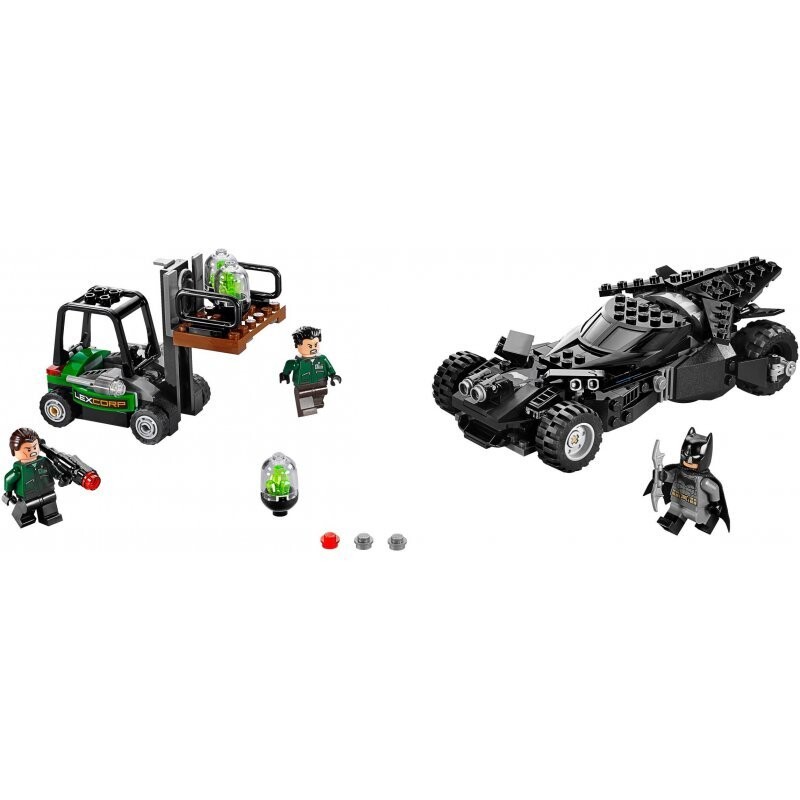 У Бэтмобиля есть открывающаяся кабина для сидения Бэтмена, большие колеса и две пусковые установки. Выстрелите ракетами из погрузчика и активируйте функцию подпружиненного взрыва. Заднюю часть погрузчика можно отсоединить, когда бой станет интенсивным. В набор также входит комикс