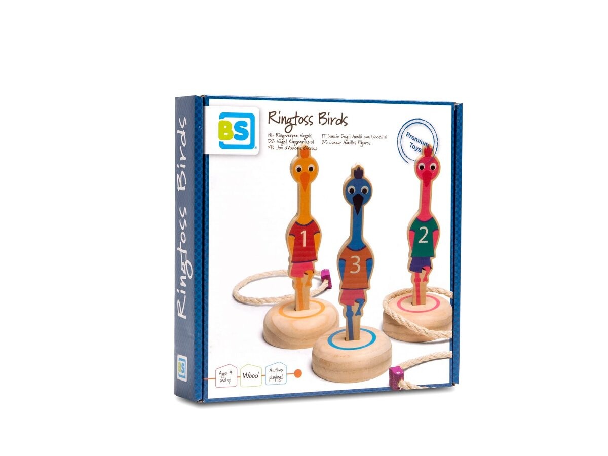 • набор состоит из 3-х деревянных подставок, разноцветных птичек и 3-х обручей.