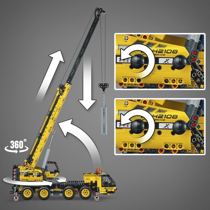 Посмотрите, как выглядит загруженная смена на стройке. С этой фантастической моделью LEGO Technic вы быстро выполните всю работу. Подъезжайте к соответствующей локации, разложите опоры и заберитесь в кабину, чтобы управлять краном. Поднимите стрелу и выдвиньте впечатляющую телескопическую стрелу, длина которой достигает 78 см! Затем используйте подъемник, чтобы поднять бетонный столб, и переходите к следующему заданию.