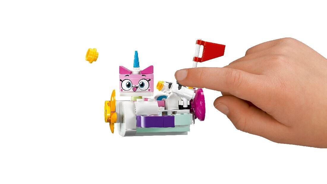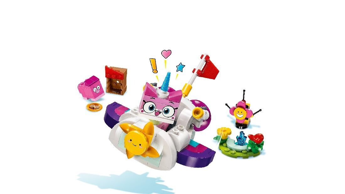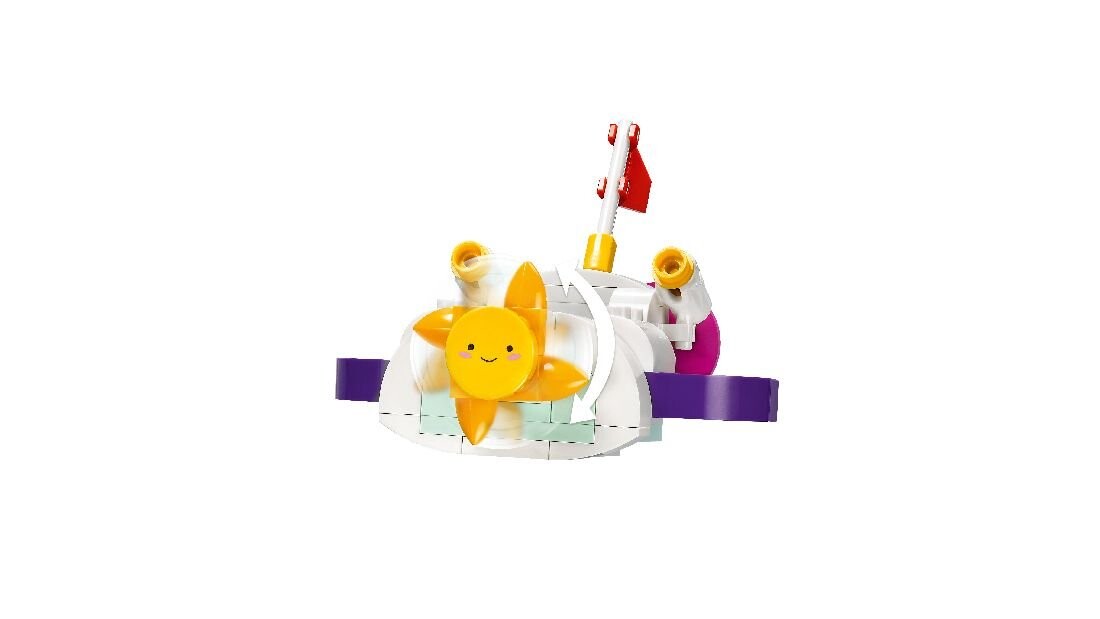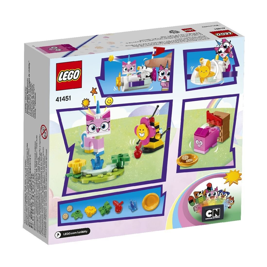 Стреляйте в блестящую материю во время полета на автомобиле LEGO Unikitty! 41451 Облачный автомобиль Юникитти. Вращайте солнечный пропеллер и приземляйтесь в парке, чтобы встретиться с друзьями Юникитти Фиби и Мисией Квадрат у фонтана. Попробуйте печенье Миси Квадрат, а затем снова поднимитесь в воздух, чтобы в еще один радостный день полюбоваться Кичерожково с высоты птичьего полета! Запрыгивайте в облачный транспорт вместе с Юникитти и разбрасывайте блестящие вещи!