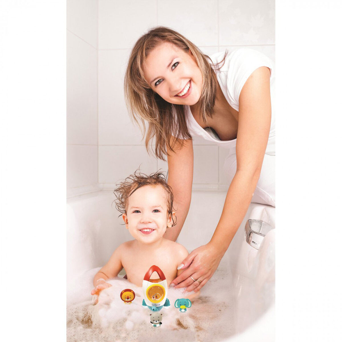 В ванне никогда не бывает достаточно удовольствия! Удивительная космическая ракета с тремя животными-космонавтами превратит вашу ванну в настоящее приключение. Наполните ракету водой и наблюдайте, как вращаются ее водяные струи.