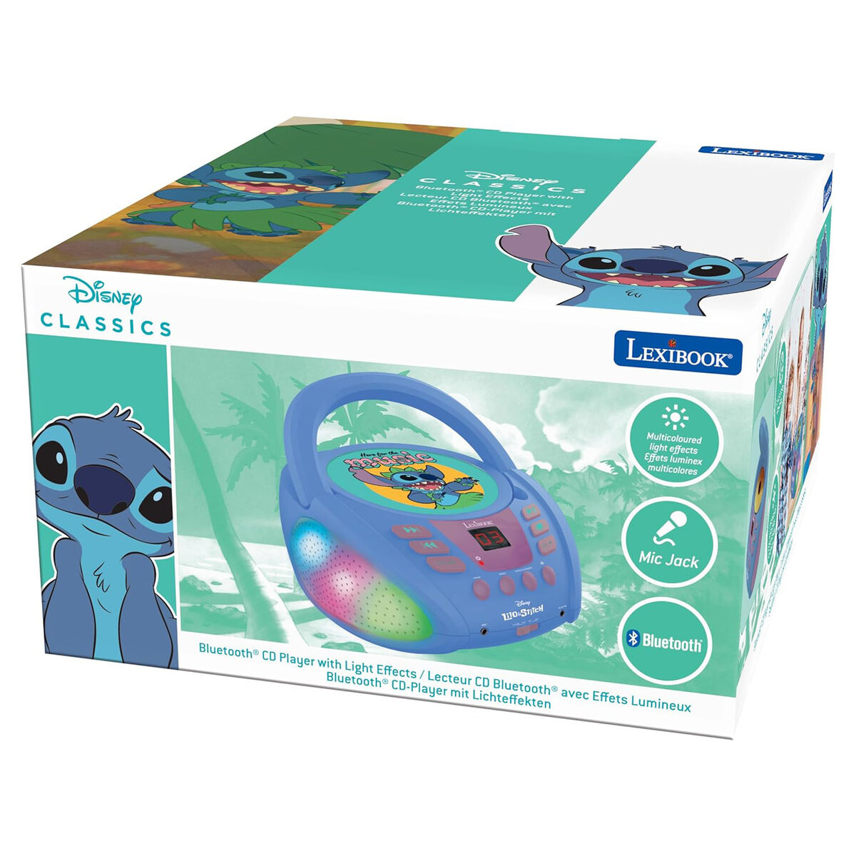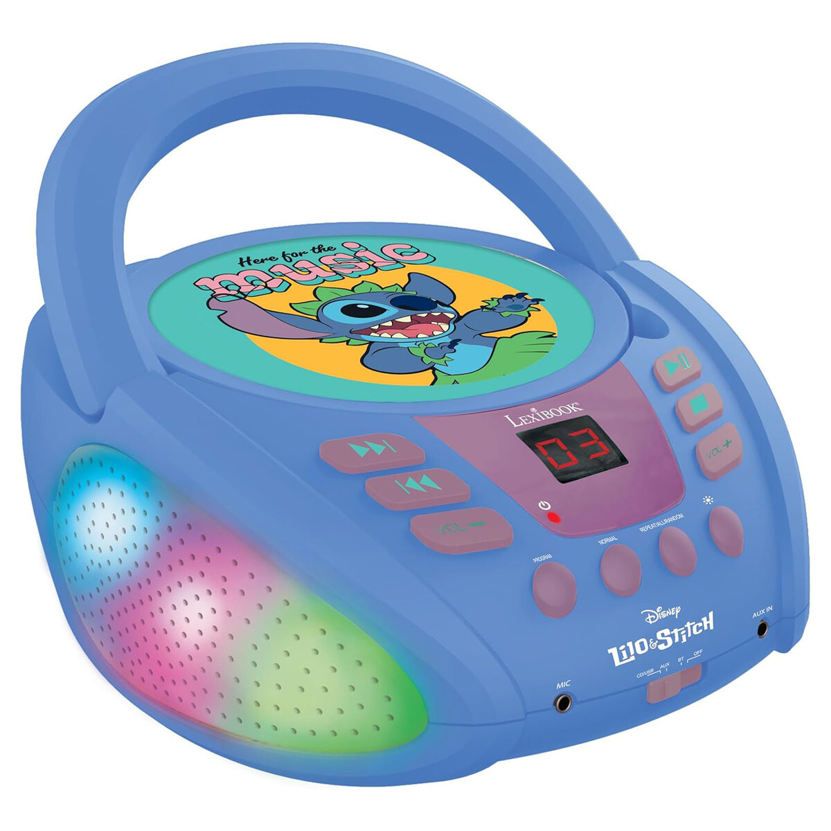 Портативный CD-проигрыватель доставит детям массу удовольствия на долгие часы. Плеер с разноцветными световыми эффектами совместим с дисками CD/CD-R/CD-RW и оснащен функцией Bluetooth 5 . 0, что позволяет подключать другие внешние устройства. Благодаря порту для микрофона (микрофон не входит в комплект) плеер идеально подходит для караоке или вокальных выступлений. Выбор музыки можно расширить с помощью планшета или смартфона (не входит в комплект), которые легко подключить благодаря разъему AUX-in . Плеер оснащен функциями , такими как «программа» для выбора порядка песен, «повтор» и «случайный выбор». Выходная мощность динамика 3 Вт гарантирует высокое качество звука. Есть даже практичная ручка для удобной переноски.
