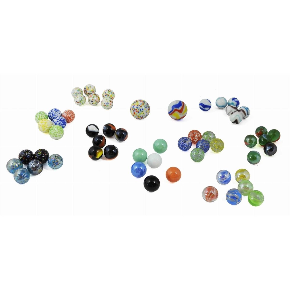 Фантастический набор из 56 стеклянных шариков двух размеров и множества узоров.