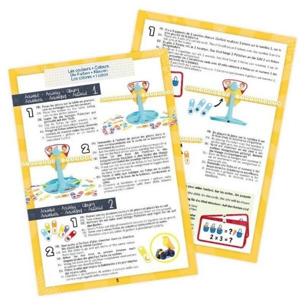 Инструкция включает в себя упражнения по счету. Дети могут научиться масштабировать и балансировать, используя два прилагаемых подноса.