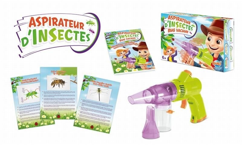 3 скорости, 1 контейнер с лупой для наблюдения за насекомыми и 2 конические носовые пробки. Инструкция с красочными иллюстрациями и информацией о различных насекомых.