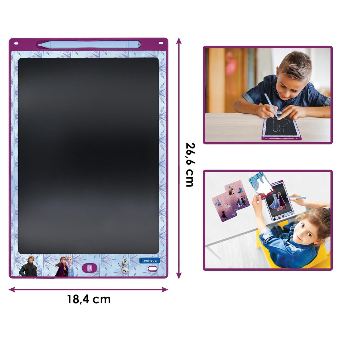 Откройте для себя волшебство детского творчества с помощью сверхлегкого планшета для рисования с электронными чернилами и шаблонами! Рисуйте и пишите без ограничений на большом экране. Идеальное развлечение в путешествии без бумажных отходов.
