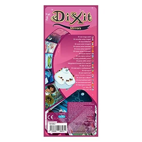 Libellud Dixit Mirrors — испано-португальское расширение Dixit… потрясающая игра, милая и запоминающаяся, в которую можно играть как с друзьями, так и с семьей. Эта отмеченная наградами игра возвращается с дополнением на 84 карты. Вам понадобится базовая коробка Dixit.