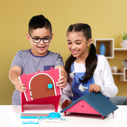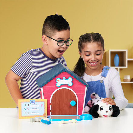 Эта удивительная игра начинается со строительства дома из элементов, входящих в комплект: стен, пола, крыши и инструментов, необходимых для создания этого волшебного убежища. Налейте в подготовленную миску немного воды, чтобы дом был готов к встрече вашего будущего питомца – далматина. Дайте питомцу имя, написав его на специальной табличке и поместив над дверью дома.