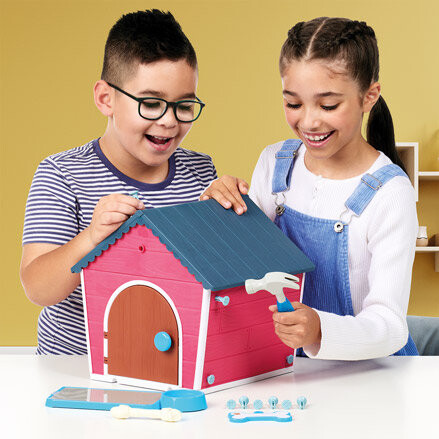 Постройте дом из деталей, и в нем волшебным образом появится собака! Ограниченная серия Далматин.Игрушка с ВАУ-эффектом. Постройте собачью будку, используя элементы, входящие в комплект (стены, пол, крыша и необходимые для строительства инструменты). Налейте воду в миску, чтобы подготовить дом для собаки, которая вскоре там будет жить. Дайте собаке имя, напишите его на табличке и прибейте над дверью дома. Что это за шум внутри? В доме волшебным образом появилась собака!