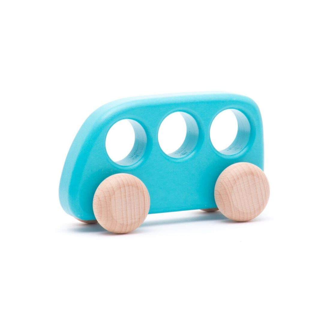 Это микроавтобус. Почему в нем всего три окна и он такой маленький? Его размер адаптирован к возможностям рук ребенка. Однако форма, мягкие формы изгибов и правильно подобранные размеры отверстий позволяют ребенку обнаружить хват пальцев и распознавать формы. Каждое движение игрушки – толкание, перекатывание, катание по изгибам мебели – это одновременно открытие пространства и динамизма, скрытых в теле.