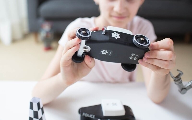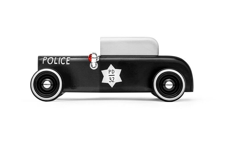 Игрушечные машинки из серии Outlaw — это автомобили, стилизованные под модели 1920-х годов. Модель «Шериф» имеет матовую черную краску, красную лампу с левой стороны и номер, размещенный на крыше, дверях и передней части радиатора. Деревянная игрушка изготовлена из высококачественной древесины бука и покрыта специальной, безопасной для детей и экологической краской, обеспечивающей долгий срок службы даже во время динамичной игры. Колеса с резиновым покрытием повышают комфорт игры и защищают почву.