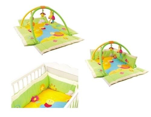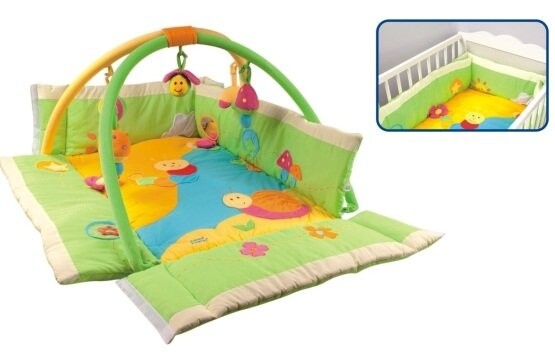 Стенки манежа не позволяют ребенку соскользнуть с коврика во время игры и дают ему чувство безопасности. В свою очередь, помещенный в кровать, коврик становится покрытием для перекладин и защищает ребенка от ударов.