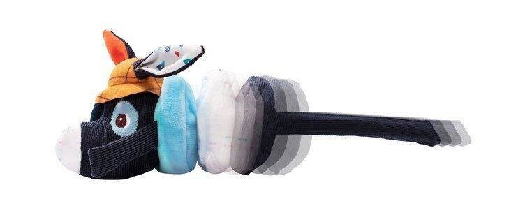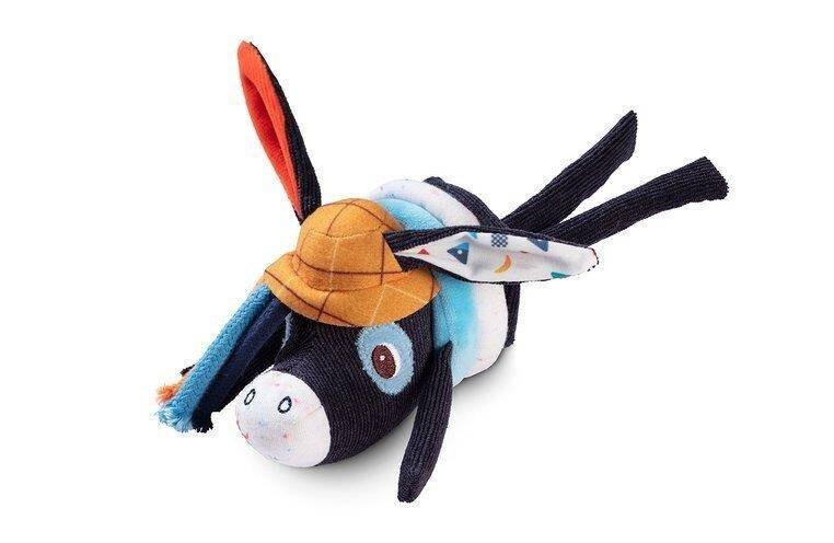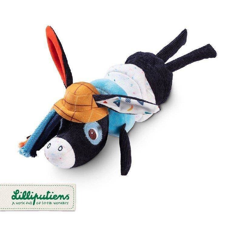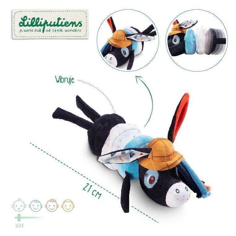 Вибрирующая мягкая игрушка из коллекции Farma бельгийского бренда Lilliputiens — оригинальное, мягкое развлечение для малышей. Он имеет вид длинноухого осла Игнаса с пышной гривой. Вы можете растянуть его длинное тело и наблюдать, как оно вибрирует, как будто танцует, возвращаясь к своей первоначальной форме. Разнообразие используемых тканей, ленты для гривы, длинные уши, лапы и ноги осла обеспечивают дополнительную сенсорную стимуляцию и способствуют тренировке хвата. Игрушка удивляет и стимулирует детское воображение. Развивает мелкую моторику (хватание, вытягивание), активизирует зрение и осязание. помогает заметить причинно-следственные связи.