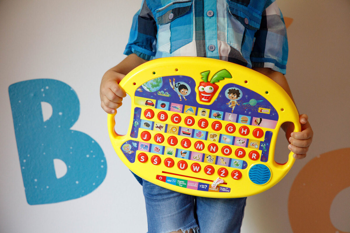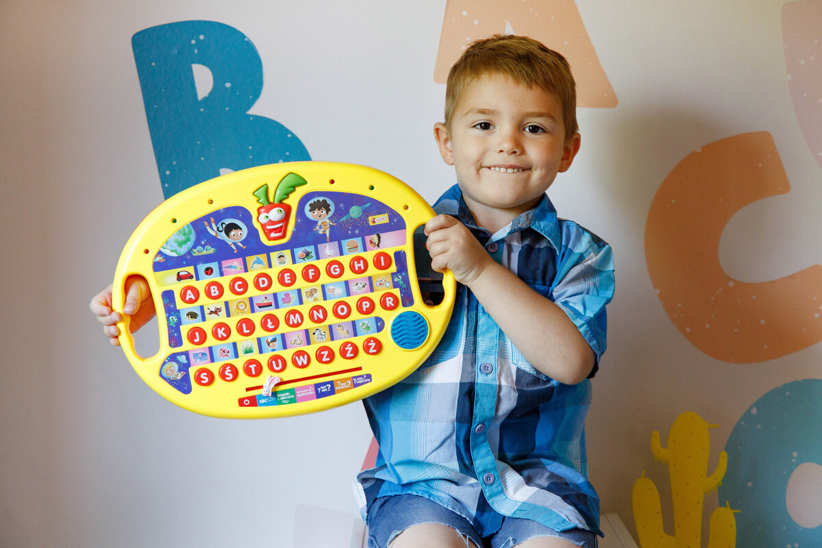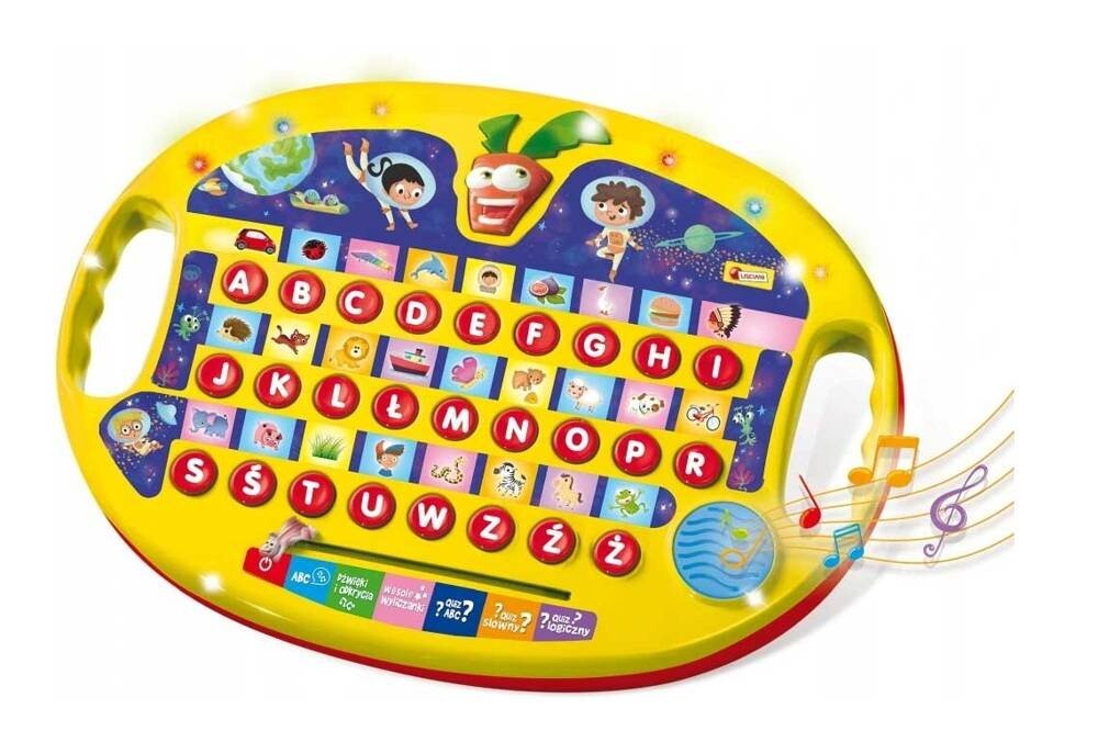 Он оснащен множеством световых эффектов, 6 клавишами и 6 обучающими функциями. Передвигая рычаг, дети смогут вместе с голосом Каротины выучить буквы алфавита, веселые стихи, а также принять участие в викторинах, в ходе которых их задачей будет найти нужную букву или слово.