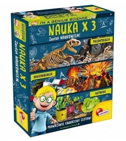 Набор «Наука x3» — это новинка в серии «Я гений», ставшей бестселлером. на польском рынке научных игр уже много лет. Выполняя опыты, которые расположены в порядке возрастания сложности, дети также получат возможность изучить теоретические основы той или иной области. Знания излагаются на языке, понятном детям, которые впоследствии имеют возможность лучше понять обсуждаемые аспекты в ходе проведения экспериментов. В этот набор входят: палеонтология, ботаника и вулканология.