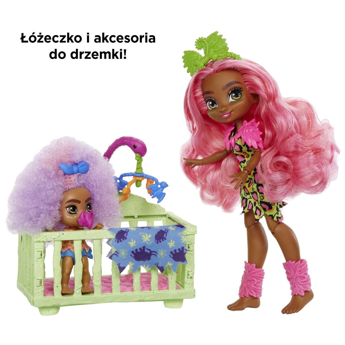 В набор входит все необходимое, чтобы заботиться о своем непослушном малыше, в том числе кроватка с очаровательным мобилем в стиле динозавра, который действительно вращается — просто толкните его. Когда Фурра встанет после сна, прикрепите ее к качающемуся динозавру и переместите, чтобы увидеть, как она качается. Благодаря меньшим аксессуарам дети могут разыгрывать различные сценки: от закусок до сказок на ночь.