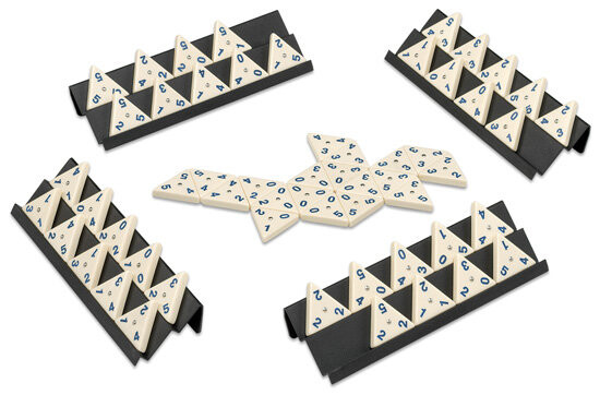 «Треугольное домино» — игра, напоминающая правила классического домино, в которой прямоугольные камни заменяются треугольными плитками.