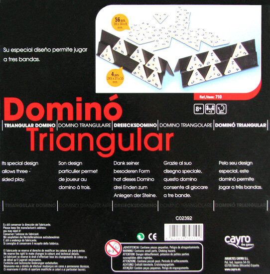 «Треугольное домино» — игра, напоминающая правила классического домино, в которой прямоугольные камни заменяются треугольными плитками.