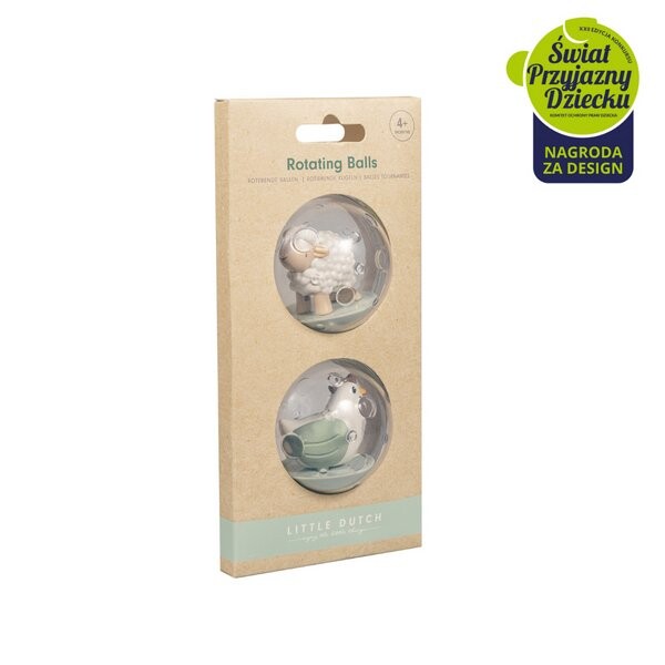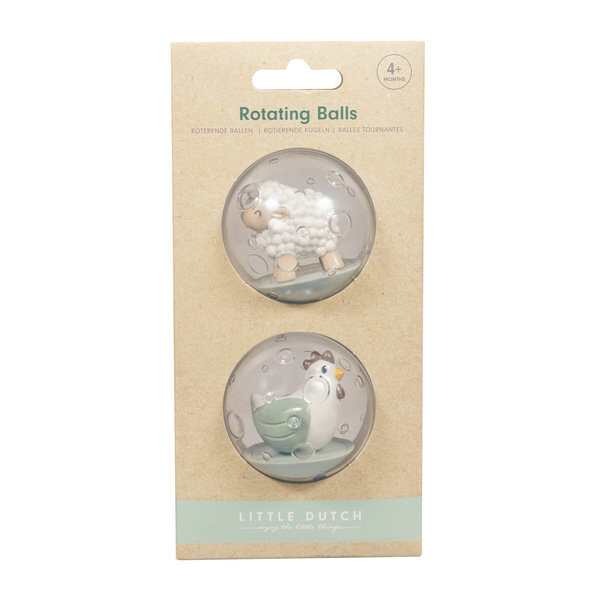 Вращающиеся шарики Little Farm от Little Dutch. 1, 2, 3 и начинайте кататься! Внутри этих вращающихся шаров находятся два очень забавных фермерских друга: овца и курица. Шарики идеальны для купания, не тонут, но после использования их необходимо правильно высушить. Размер идеально подходит для маленьких ручек. Вращающиеся мячи — идеальное дополнение к другим товарам для малышей из коллекции Little Farm.
