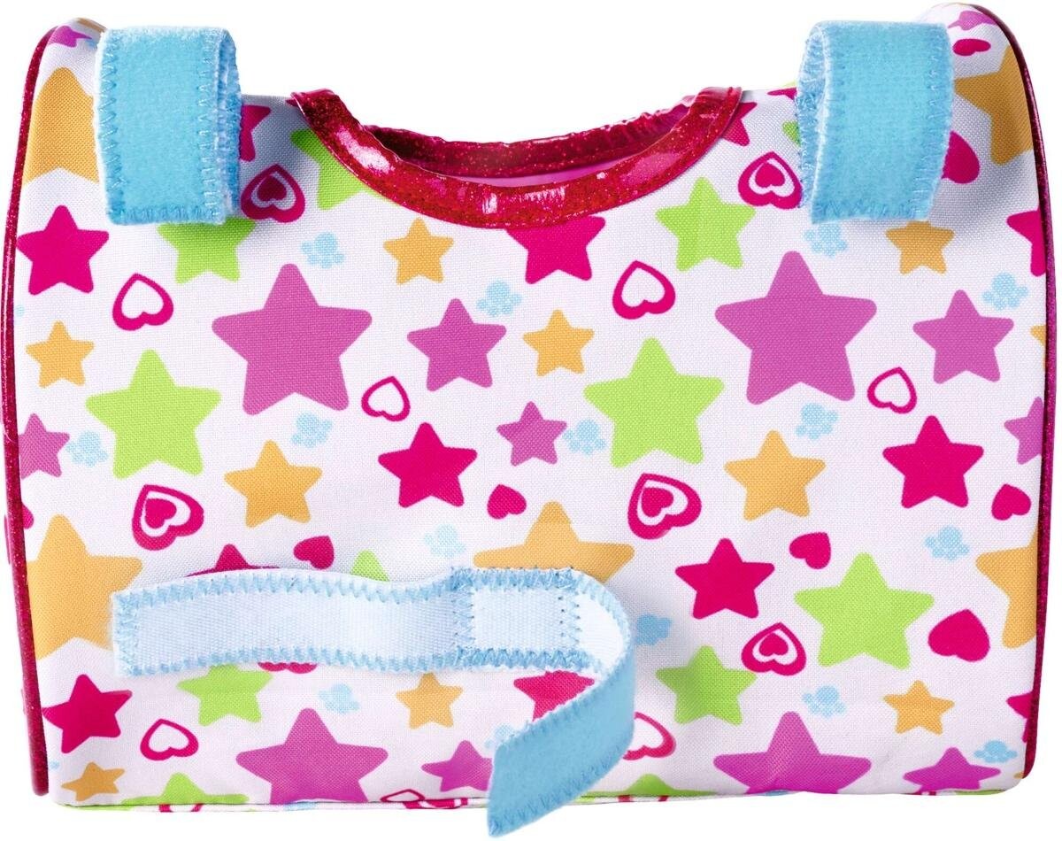 Плюшевая собака чихуахуа в спортивном стиле, плюшевая игрушка в защитном шлеме. Комплект дополняет красочная транспортировочная сумка со звездным узором, сзади она имеет три застежки-липучки, с помощью которых ее можно легко прикрепить к рулю велосипеда или самоката, чтобы дети всегда могли брать ее с собой в поездки.