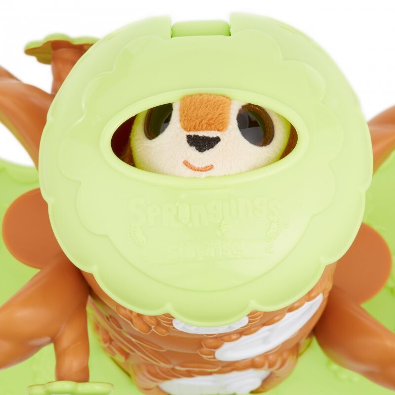 Спринглинги Сюрприз — веселые, подвижные животные, которые любят прыгать. Домик на дереве — отличный набор для игры с весенними плюшевыми игрушками. Просто поместите в дом двух или трех животных, поднимите крышу и запустите сразу всю стаю прыгающих приятелей! В набор входят 2 зверька – мама и бельчонок. В домике на дереве можно разместить Весенний домик из комплектов, продаваемых отдельно.