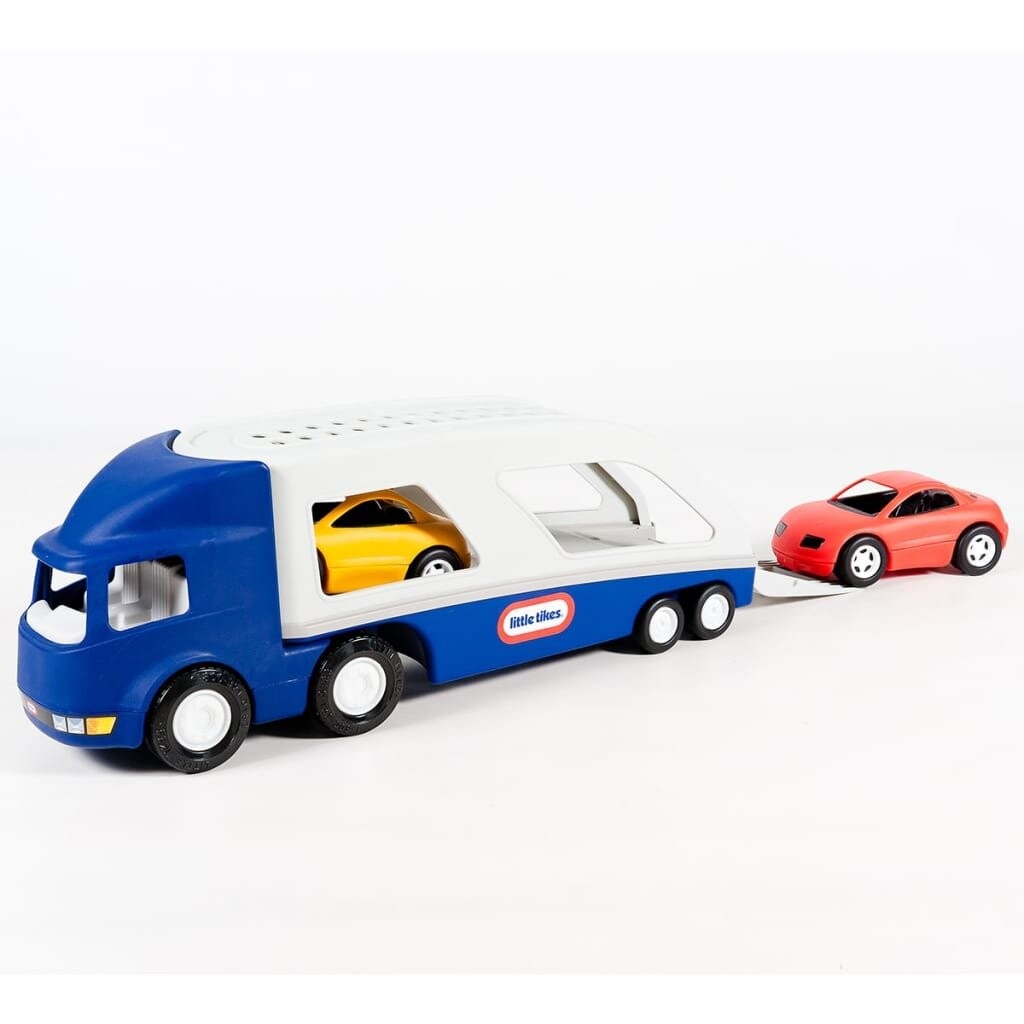 Большой автовоз оснащен двумя игрушечными спортивными машинками и легко складывающейся рампой. Чтобы создать больше возможностей для игры, сверху можно разместить одну машину, а грузовик можно отсоединить от тележки. Набор можно использовать как в помещении, так и на улице, он подходит для детей от 3 до 6 лет.