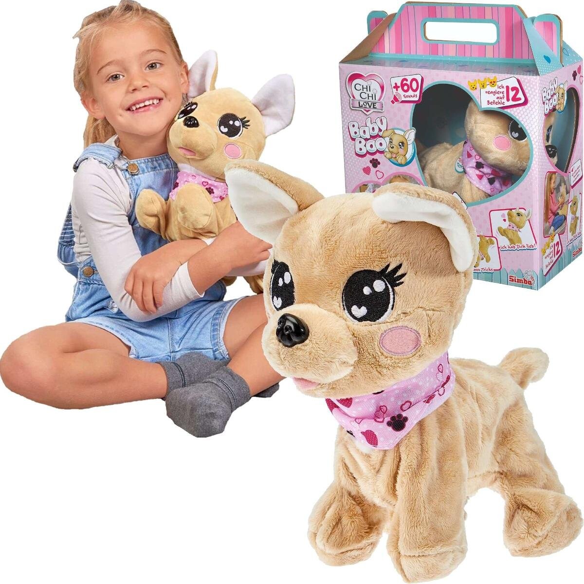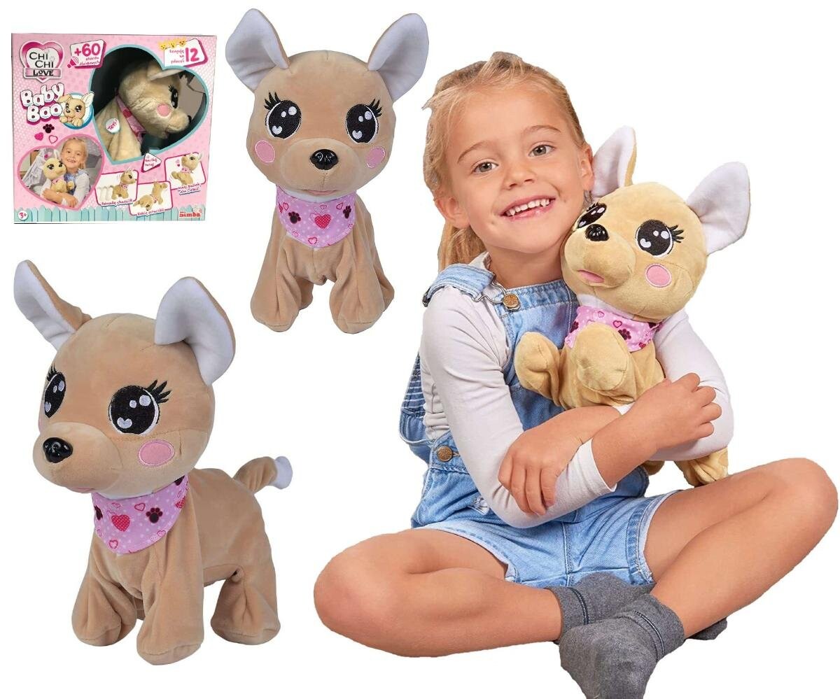 ChiChi Love Малыш Бу реагирует на 12 различных голосовых команд, может ходить, сидеть, лежать, стоять на передних и задних лапах , воспроизводит 60 звуков, включая мелодии. Baby Boo
