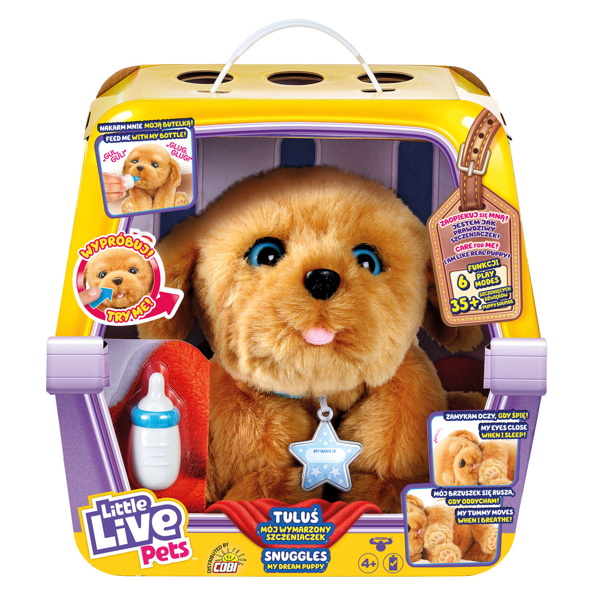 Познакомьтесь с очаровательным Тулусом — интерактивной собакой из Коби. Тулуш – это не только игрушка, но и друг, подаривший массу радости и теплых моментов. Little Live Pets, Интерактивная собака ТулусьТулусь — щенок, который любит обниматься. Тулуш реагирует так, как если бы он был настоящим щенком. Когда вы похлопаете его по голове или погладите по животу, он отреагирует звуками. Тулуш тоже открывает глаза и двигает головой. Вы также можете его покормить, и он будет издавать тайные звуки счастья. Он закрывает глаза, когда спит, и шевелит животом, когда дышит. У щенка 6 функций и 35 звуков. Sweet Companion