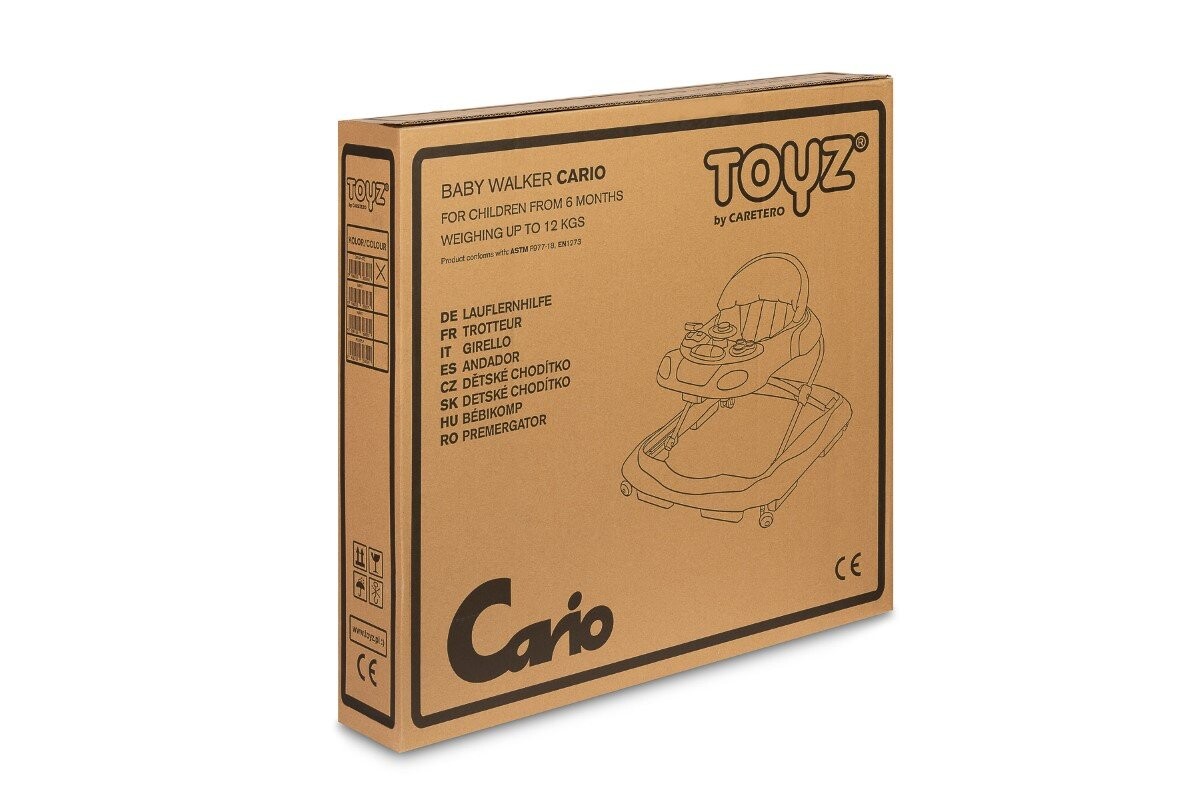 Cario — ходунки TOYZ, которые пробудят в вашем малыше любовь к автомобилю. Ходунок похож на автомобиль. Малыш будет чувствовать себя в нем комфортно благодаря мягкой спинке сиденья. Регулировка высоты под рост ребенка возможна благодаря специальной конструкции. Одной кнопкой вы можете легко регулировать высоту столешницы. Красочная мультимедийная панель привлечет внимание ребенка и будет способствовать правильному развитию малыша.