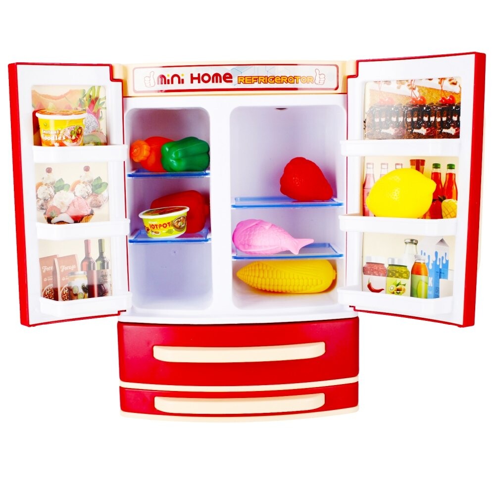 Преимущества продукта: развивает творческие способности ребенка, учит играть, тренируется и готовится к взрослой жизни. Интерактивное родительско-детское развлечение, проводите время и играйте с ребенком дома. Многофункциональный холодильник MEGA CREATIVE имеет звуковые и световые эффекты, указывает температуру, которую вы можете регулировать, чтобы продукты в холодильнике хранились безопасно. своих близких и подарите им угощения и деликатесы из ближайшего магазина. Холодильник, задача которого снизить температуру продуктов, которые вы хотите туда разместить, с красочными наклейками, а также имеет дополнительные полочки для молока, воды, баночек и т. д. и один ящик - как морозилка. Дополнительно в комплект входит такое оборудование, как: : овощи и фрукты, напитки, рыба, салаты. . . Размеры/вес/батарейки: Размеры товара: холодильник, длина: х высота х глубина см 20х28х14. Вес изделия кг. 0 98 кг. Размеры упаковки: длина х высота основной см 26х32х15 Вес упаковки кг 1,21 кг. Для питания требуется 3 батарейки типа AA LR6 1,5 В, в комплект не входят. Все упаковано в коробку с окошком. Предназначен для детей от 3 лет. Упаковка в коробке по 12 штук.