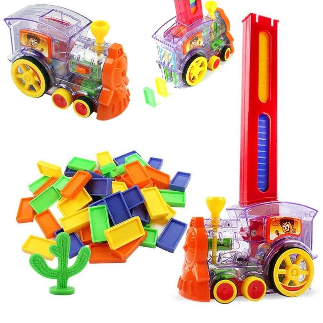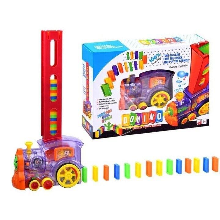Автоматический локомотив Domino размещает блоки на соответствующих расстояниях во время движения. Просто заполните кормушку блоками и включите локомотив. Локомотив может двигаться вперед, влево или вправо. Направление движения контролируется поворотом дымохода , благодаря чему форма маршрута может быть разной , например, улитки, круги и тропы.