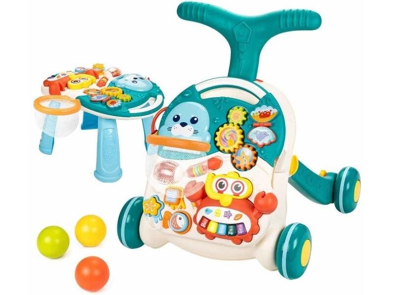 Ничто не сделает ребенка более счастливым, чем игрушка с сюрпризами, которые он может обнаружить самостоятельно. А их у этого толкача очень много!
