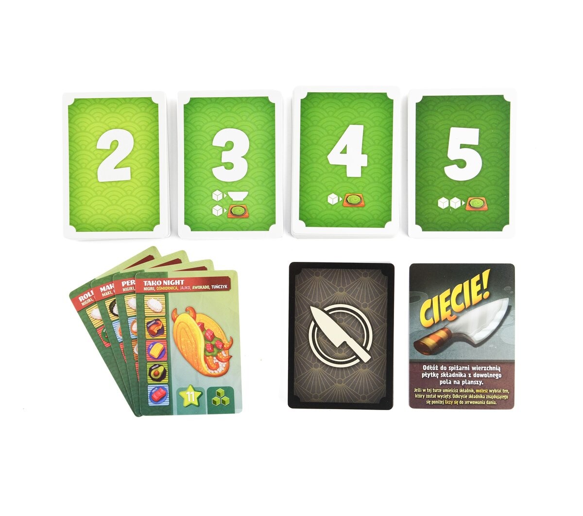 В игре К черту! , вы соревнуетесь друг с другом за возможность выполнить самые престижные заказы на суши, роллы и японскую кухню. Вы можете сосредоточиться на количестве, выполняя как можно больше мелких и дешевых заказов, или рискнуть и приготовить меньше, но более ценные (с точки зрения победных очков) блюд.