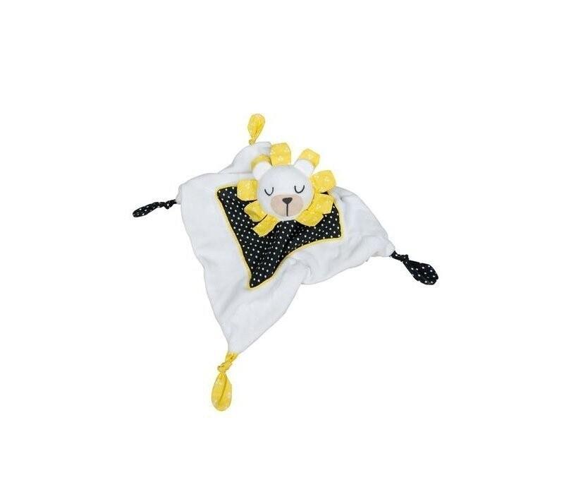 Этот маленький плюшевый лев станет верным спутником вашего ребенка. Поднятая голова служит куклой для развлечения ребенка, а часть с платком позволит ребенку легко ее поймать.